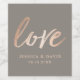 Dieses Hochzeitsweinflaschen-Etikett verfügt über einen handgeschriebenen Look-Bürste-Schrifttyp mit einer Imitat-Rose Gold-Folie Textur. Personalisieren Sie Ihre Daten mit Namen und Datum.