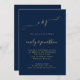Elegante Script Initials Navy Gold QR Code Hochzei Einladung