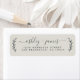 Das schicke, moderne und schlichte Ehering-Adressetikett mit Ihren Namen in schwarz-eleganter Schrift-Kalligrafie mit einer stilvollen Touch rustikalen Blattwerks auf hellgrauem Hintergrund. Fügen Sie einfach Ihren Namen und Ihre Adresse hinzu. Exklusiv für Sie entworfen von Happy Dolphin Studio. Wenn Sie Hilfe oder passende Produkte benötigen, kontaktieren Sie uns bitte unter happydolphinstudio@outlook.com. Wir helfen Ihnen gerne, Ihre Hochzeit zum schönsten Tag zu machen!