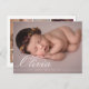Moderne Geburtsankündigung mit einem Foto auf der Vorderseite und sechs auf der Rückseite, begleitet von eleganter weißer Kalligraphie. Alle Farben können individuell angepasst werden. Es kann mit Ihrer eigenen Nachricht und Babystatistiken personalisiert werden.