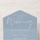 Alles in einer dustigen blauen Hochzeitseinladung mit eleganter Schrift-Kalligraphie-Typografie. Die Einladung enthält eine perforierte RSVP-Karte, die für Sie individuell adressiert oder links als leere Karte für die Handschrift der Adressdaten Ihres Gastes verwendet werden kann. Entwickelt von Thisisnotme©