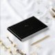 Dieses kleine und schicke Gästebuch aus schwarz und goldfarbener Folie zeigt eine Grenze, die Monogramm-Initialen von Braut und Bräutigam in elegantem Drehbuch und anderen Texten inklusive Braut- und Bräutigam-Namen und Datum in serifenlosen Sans-Schriftart. Auf dem Rücken sind die Namen von Braut und Bräutigam geschrieben. Personalisieren Sie es mit Ihren Daten.