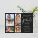 Elegante Script Multi Foto Graduation Party Einladungen beinhaltet fünf Ihrer Lieblings-Fotos Ihrer Uni oder High School Absolventen mit dem Wirblen modernen schwarzen Kalligraphie-Skript-Overlay "Graduate". Sie können den Text einfach für Ihre Party Einladung bearbeiten. Einfach, stilvoll und elegant. Erstellt von ©Evco Studio www.zazzle.com/store/evcostudio