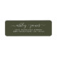 Chic, modern und einfach Brautadressen-Label mit Ihren Namen in weißer, eleganter Handschrift auf einem olivengrünen Hintergrund geschrieben. Fügen Sie einfach Ihren Namen und Ihre Adresse hinzu. Exklusiv für Sie entworfen von Happy Dolphin Studio. Wenn Sie Hilfe oder passende Produkte benötigen, kontaktieren Sie uns bitte unter happydolphinstudio@outlook.com. Wir helfen Ihnen gerne, Ihre Hochzeit zum schönsten Tag zu machen!