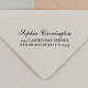 Elegante Typografie Rücksendeadresse Tinte Briefmarke. Diese personalisierte Vorlage enthält Ihren Namen in einem klassischen Kalligrafieschrift, gepaart mit stylischen Serifenschrift für die Adresse. Individuell gestaltete Briefmarke eignen sich hervorragend zur Selbstadressierung Ihrer Umschläge und Pakete.