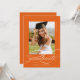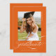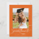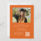 Orange Elegant Script QR Code Foto Graduation Party Invitation bietet ein schönes und elegantes Skript, das Ihr Foto überlagert. Ihre Party-Details und das Foto sind auf der Rückseite, zusammen mit einem QR-Code für die Wunschliste Ihres Absolventen.