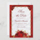 Elegante Script Red Gold Rose Blumenhochzeit Save The Date