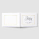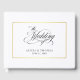 Dieses schlichte und elegante Gästebuch-Design enthält fließenden Kalligraphieskripttext mit dem Namen und dem Hochzeitsdatum der Braut und des Bräutigams, gerahmt mit einer einfachen rechteckigen Goldgrenze.