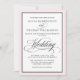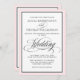 Eine wunderschön elegante Hochzeitseinladung mit kalligrafischem Schriftzeichen betont mit einem Rand in rot-rosa, der Ihren Text umgibt. Der schlichte, geschmackvolle Stil ist für Hochzeiten zu jeder Jahreszeit gut geeignet. Entsprechende RSVP-Karten und andere Hochzeitsprodukte sind in diesem Design erhältlich. Diese Einladung ist die perfekte Wahl, wenn Sie etwas Klassisches und Traditionelles in Schwarz und Weiß mit einer kleinen Touch von Farbe suchen, die zu Ihrem Hochzeitsthema passt.