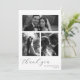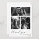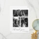 Mit dieser individuell gestaltbaren Dankeschön-Karte für Ihre Hochzeit. Dieses moderne Collage-Design mit Platz für mehrere Fotos und einem eleganten Script-Schriftart ermöglicht es Ihnen, Ihre Lieblings-Hochzeitsstipps zu präsentieren. Personalisieren Sie mit Ihren Namen, Ihrem Hochzeitstag und Ihren Fotos, um ein herzliches Wohl für Familie und Freunde zu schaffen. Ein zeitloser und stilvoller Weg, um Ihren Gästen zu danken, dass sie Teil Ihres besonderen Tages sind.