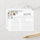 Die elegante Script Winter Brautparty Recipe Card vereint Tradition und Saisoncharakter. Die Karte mit raffinierten Schriftzeichen und zarten Wintergrün-Elementen lädt die Gäste dazu ein, ihre Lieblingsrezepte zu teilen und so einen sinnvollen Sake für die zukünftige Braut zu schaffen. Ideal für Winterduschen mit einem gemütlichen, botanischen Thema, ergänzen diese Karten nahtlos das Dekor Ihres Events und ermutigen zu persönlichen Beiträgen zur neuen kulinarischen Reise des Paares. Wenden Sie sich an den Designer, um passende Produkte, Farbvarianten oder einfache Designänderungen zu erhalten. Copyright Anastasia Surridge, alle Rechte vorbehalten. BITTE BEACHTEN SIE: DIESE RECIPE-KARTE WIRD NICHT IN DER QUADRATIE-INVITATION-UMGEBUNG PASSIERT, DAHER MÜSSEN SIE DIE VERTIKALE 12x18"-ENTWICKLUNG DER ENTSPRECHENDEN EINLADUNG BESTELLEN, MIT DIESER RECIPE-KARTE ZU GEHEN: https://www.zazzle.com/winter_evergreen_elegant_bridal_shower_invitation-256365369901036883
