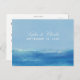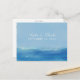 Ozeanbezogene Save the Date Postkarten mit Wasserfarbenwellen und schlichten, eleganten Drehbüchern und modernen Sans-Serif-Schriftart. Entworfen, um unseren eleganten Ocean Watercolor Hochzeitseinladungen zu entsprechen.