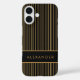 Dieses Handy-Gehäuse zeichnet sich durch ein elegantes Design mit senkrechten goldenen Streifen auf schwarzem Hintergrund aus und verleiht ihm ein elegantes und luxuriöses Aussehen. Ein schwarzes Band quer durch die Mitte zeigt den Namen der Besitzer in fett gedruckten Großbuchstaben, die eine personalisierte und hochwertige Touch hinzufügen. Die Ästhetik ist modern, raffiniert und stilvoll, ideal für jemanden, der Mode und Funktion schätzt.