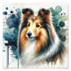 Dieser atemberaubende Aquarellkunstdruck erfasst die Gnade und Intelligenz eines Sable Shetland Sheepdog, der in goldbraunen und weißen Tönen dargestellt ist. Der fließende Mantel und die ausdrucksstarken Augen des Hundes werden durch abstrakte Aquarellspritzungen in tiefblau, navy und aquamarin verschönert, was eine faszinierende und künstlerische Komposition schafft. Dieses hochwertige Printing eignet sich perfekt für Sheltie-Liebhaber, Hundefreunde und Liebhaber von edlen Porträts und verleiht jedem Zuhause- oder Bürodekor eine Touch von Eleganz und Charme.