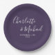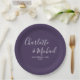 Elegante lila Hochzeitszeitung-Teller personalisiert mit Stilnamen und Ihrem besonderen Hochzeitsdatum. Entwickelt von Thisisnotme©