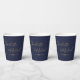 Elegante Signature Script Navy Blue Gold Hochzeit Pappbecher