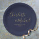 Elegante Signature Script Navy Blue Gold Hochzeit Pappteller