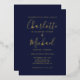 Elegante Signature Script Navy Blue Wedding Gold Folieneinladung