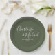 Elegantes Signaturskript Olivgrün Hochzeitspapier Teller personalisiert mit Signaturstil Namen und Ihrem besonderen Hochzeitstag. Entwickelt von Thisisnotme©