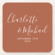Elegante Signatur Terracotta Hochzeit Untersetzer personalisiert mit Signature Stilnamen und Ihrem besonderen Hochzeitstag. Entwickelt von Thisisnotme©