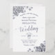 Diese schöne Hochzeitseinladung zeigt echten Foliendruck auf einem klassischen weißen Hintergrund. Das schöne Design hat eine laksige Skriptkalligraphie mit Blumenfiligrane in den Ecken. Die Rückseite der Karte ist hellgrau. Stilvoll, elegant, raffiniert und elegant, ist diese Einladung extravagant und glänzend. Eine wunderschöne und elegante Art, Freunde und Familie zu einem unvergesslichen Erlebnis zu einladen.