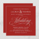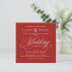 Eine wunderbar elegante quadratische Hochzeitseinladung mit silbernen Kalligraphie-Skript-Akzenten über einem prächtigen romantischen roten Hintergrund. Der schlichte, geschmackvolle Stil funktioniert gut für Hochzeiten während der Weihnachtsferien oder rund um den Valentinstag. Entsprechende RSVP-Karten und andere Hochzeitsprodukte sind in diesem Design erhältlich.