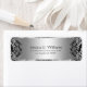Elegante schwarze Blumenspitze an den Enden mit metallisch silberfarbenem Gay-Hintergrund. Sonnige Silbergrenze. Es kommt in Silber und Weiß. Vollständig anpassbare Rückadresse Label Vorlage.