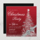 Elegante Winter-Weihnachts-Dinnerparty-Einladungsvorlage mit silberrotem Weihnachtsbaum mit Schleife und Lichtern. Beeindrucken Sie Ihre Freunde mit diesem anspruchsvollen und modernen Einladungsdesign.