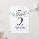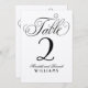Jede Tischnummer muss individuell angepasst und in den Warenkorb aufgenommen werden. Elegantes metallisches Silber (kann modifiziert werden) und Schwarz Design schöne Drehschrift und ein Hochzeitsmonogramm, das erscheint mit der Tischnummer auf beiden Seiten der Karte (zweiseitige Gestaltung).