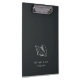 Die schicke, personalisierte Zwischenablage der Insel bietet zwei Textzeilen in klassischer Weißschrift auf einem weichen schwarzen Hintergrund, der mit einer Muschel in tropischen Konken in Imitaten mit Silberfolie verziert ist. Design wiederholt sich auf der Rückseite. Fügen Sie Ihren Namen oder Firmennamen zu dieser eleganten Zwischenablage mit modernem Strandleben hinzu.