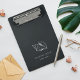 Die schicke, personalisierte Zwischenablage auf der Insel bietet zwei Textzeilen in klassisch weißer Schrift, auf einem weichen schwarzen Hintergrund mit einer tropischen Konch-Muschel-Illustration in Imitaten silberne Folie. Design wiederholt sich auf der Rückseite. Bitte beachten Sie, dass diese Zwischenablage eine Mini-Größe hat; Vollversion ist auch in unserer Conch Muschel Kollektion erhältlich.