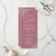 Dieses wunderschöne Hochzeitsprogramm besticht durch ein elegantes Design mit weißem Text auf einer staubigen Rose oder einem lila rosa Hintergrund. Auch die silbergrauen Imitate und die Wirbel in den Ecken zeichnen sich durch ihre glänzende, silbergraue Optik aus. Die Titel sind in extravaganter Skriptkalligraphie geschrieben, und es gibt Platz für Ihre Zeremonie und Hochzeitsfeier Details, sowie ein kurzes Dankeschön für Ihren Gast. Ein wunderbarer Weg, um Ihre Freunde und Familie zu Ihrer Hochzeitsfeier zu begrüßen.