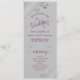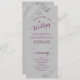 Dieses wunderschöne Hochzeitsprogramm zeichnet sich durch ein elegantes Design aus, mit Cassis lila oder Magenta-Text auf grauem Hintergrund und zartem silbergrauem Imitat-Foliengurten und Wirbel in den Ecken. Die Titel sind in extravaganter Skriptkalligraphie geschrieben, und es gibt Platz für Ihre Zeremonie und Hochzeitsfeier Details, sowie ein kurzes Dankeschön für Ihren Gast. Ein wunderbarer Weg, um Ihre Freunde und Familie zu Ihrer Hochzeitsfeier zu begrüßen.
