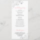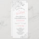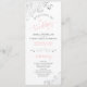 Dieses wunderschöne Hochzeitsprogramm zeichnet sich durch ein elegantes Design aus, mit rosa und grauem Imitat auf weißem Hintergrund und silbergrauen Folienrollen und Wirbel in den Ecken. Die Titel sind in extravaganter Schrift-Kalligraphie geschrieben, und es gibt Platz für Ihre Zeremonie und Hochzeitsfeier Details, sowie ein kurzes Dankeschön für Ihre Gäste. Ein wunderbarer Weg, um Ihre Freunde und Familie zu Ihrer Hochzeitsfeier zu begrüßen.