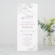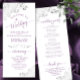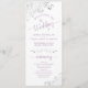 Dieses wunderschöne Hochzeitsprogramm zeichnet sich durch ein elegantes Design aus, mit lila oder Lavendel-Text auf weißem Hintergrund und silbergrauen Imitate-Foliengurten und Wirbel in den Ecken. Die Titel sind in extravaganter Schrift-Kalligraphie geschrieben, und es gibt Platz für Ihre Zeremonie und Hochzeitsfeier Details, sowie ein kurzes Dankeschön für Ihre Gäste. Ein wunderbarer Weg, um Ihre Freunde und Familie zu Ihrer Hochzeitsfeier zu begrüßen.