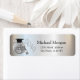 Eleganter silberner Abschluss Rücksendetikett mit Graduierungskappe, Diskokugel und Weinflasche.