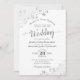 Elegante Silver Gray Lace Formal White Wedding Einladung