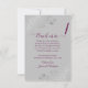 Diese wunderschönen Karten sind ein guter Weg, um Ihre Freunde und Familie wissen, Save the Date für Ihre kommende Hochzeit lassen. Sie zeichnen sich durch ein elegantes, lila, magenta- oder berry- und graues Design aus, in einem ovalen Rahmen, umgeben von silbergrauen Spitzen-Frills und extravaganten Schriftzeichen mit Ihren Namen, Hochzeitstag und Ort. Die Rückseite hat eine niedliche "Bleistift uns in" Grafik mit Platz für eine Notiz, die eine Website, wo Ihre Gäste gehen können, um mehr Informationen.