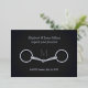 Diese Einladung enthält eine Illustration einer silbernen Ringsnaffelpartie, die mit Silberfolie hervorgehoben ist, geeignet für eine Pferdeehmung, Party auf Ihrem Bauernhof oder für ein Pferdegeschäft oder eine Wohltätigkeit.