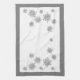 Küchenhandtuch mit funkelnd Silberschneeflocken auf weißem Wintergrund.
