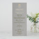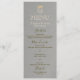 Einfaches, elegantes, modernes, luxuriöses, silbergraues Hochzeitsmenü mit goldenen königlichen Monogramm ganz oben. Perfekte Wahl für stilvolle, glamouröse, zeitgenössische Hochzeiten