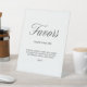 Ermuntern Sie Ihre Gäste mit unserem eleganten und eleganten minimalistischen Hochzeitsschild "Favors" auf der Zuhause. Dieses elegante, schwarze Drehbuch und klassische Schrift auf weißem Hintergrund sind perfekt für formale Veranstaltungen geeignet. Sie können auch die Farben des Texts und des Hintergrunds an Ihr Thema anpassen. Machen Sie mit unserem Favoritenzeichen eine Erklärung an Ihrem Empfang. Lassen Sie es sich individuell gestalten, um Ihren einzigartigen Stil zu widerspiegeln, und fügen Sie Ihrer Hochzeitsdekoration eine Touch der Eleganz hinzu. Bestellen Sie jetzt eine Touch Eleganz zu Ihrem großen Tag!