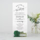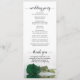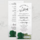 Dieses wunderschöne Hochzeitsprogramm besticht durch ein elegantes Design mit einer Single-Rose in smaragdgrünen Farben, die auf der Seite liegt und im Wasser reflektiert. Die Titel sind in extravaganter Schrift-Kalligraphie geschrieben, und es gibt Platz für Ihre Zeremonie und Hochzeitsfeier Details, sowie ein kurzes Dankeschön für Ihre Gäste. Ein wunderbarer Weg, um Ihre Freunde und Familie zu Ihrer Hochzeitsfeier zu begrüßen.