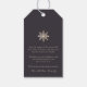 Mit diesem eleganten Snowflake Holiday-Geschenktag stärken Sie Ihr Geschenkspiel. Die Vorderseite präsentiert eine atemberaubende metallische Schneeflocke auf dunklem, natürlichem Hintergrund und verleiht Ihren Geschenken eine Touch Eleganz. Die herzliche Nachricht "Happy Holidays with Warm Wwünscht this Holiday Season" vermittelt Ihnen Ihre feierlichen Grüße schön. Auf der Rückseite finden Sie eine kleinere Schneeflocke, begleitet von einer warmen und herzlichen Botschaft, die eine persönliche Verbindung zu Ihren Empfängern schafft. Passen Sie den Text an, und fügen Sie Ihren Familiennamen für diese zusätzliche personalisierte Touch hinzu. Dieses vielseitige Geschenkschild ist das perfekte Dekor für Ihre Urlaubspakete und fügt Ihren wohlüberlegten Geschenken ein einzigartiges und charmantes Element hinzu. Freude und Feiertagsjubiläum mit jedem Geschenk verteilen, geschmückt mit diesem eleganten und anpassbaren Tag.