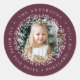 Fügen Sie mit unseren eleganten Snowflake Wreath-Rücksendeadressen-Aufklebern eine festliche Touch zu Ihren Urlaubskurven hinzu. Die Rücksendeadresse-Aufkleber für den Urlaub bieten Ihr Foto, umgeben von einem Kranz von weißen Schneeflocken und Kiefernästen mit einem lila Beerenhintergrund. Ihr Familienname und Ihre Rücksendeadresse werden am äußeren Rand der Rundaufkleber in weißer Schrift angezeigt.