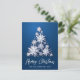 grußkartefeiertagefrohe weihnachtenmodernminimaleinfachpapierschnitteblau und weißweihnachtsbaumtypografie