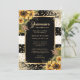 Elegante Sonnenblume Gold Schwarz-weiß Quinceñera Einladung