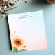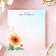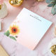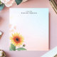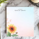 Genießen Sie die Wärme eines sonnigen Tages mit diesem personalisierten Notizblock. Eine wunderschön detaillierte Sonnenblumenillustrierung ziert die untere links Ecke, das Set vor einem weichen, pastellfarbenen Farbverlauf. Dieses Design bietet Platz für Ihren eigenen Text und eignet sich ideal zum Hinzufügen einer persönlichen Touch. Ideal für schnelle Notizen, Aufgabenlisten oder herzliche Nachrichten. Eine stilvolle und praktische Ergänzung zu jedem Zuhause-Büro oder Schreibtisch.