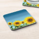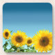 Elegante Sonnenblumen auf himmelblauen Farbtönen Hintergrund Untersetzer. Ideal für Naturliebhaber. Man glaubt, Sonnenblumen bringen Freude!