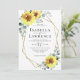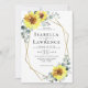Elegante Sonnenblumen Blau Gold Geometrische Hochz Einladung